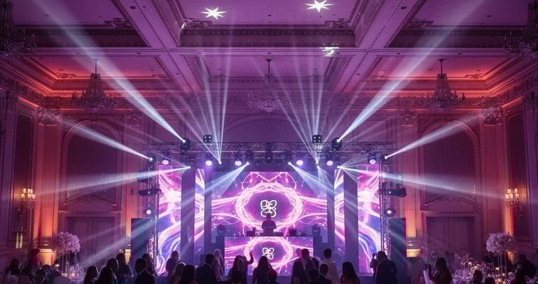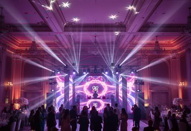 Each lighting setup is fully customized to match your event theme — elegant, dramatic, or energetic… exactly the way you want.