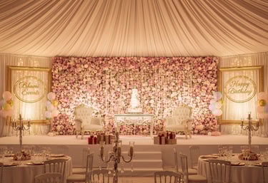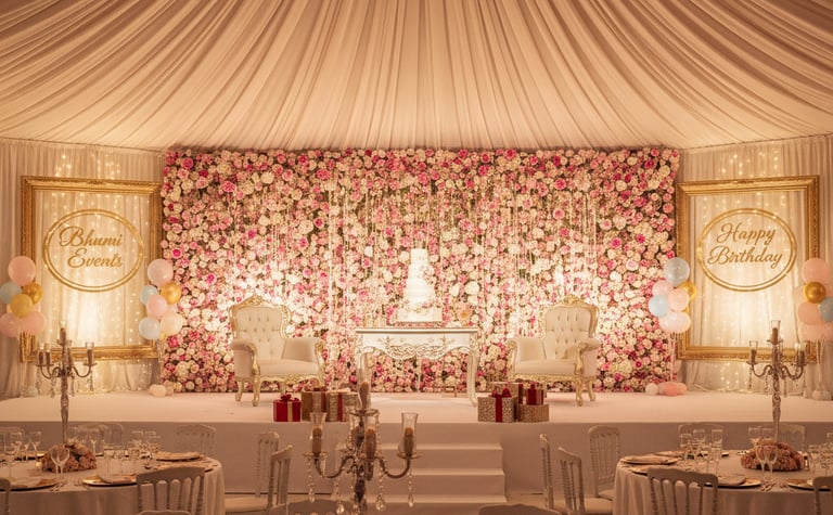 Colorful theme décor, cartoon characters, balloon world, kids stage, music, games & smile-filled moments.
